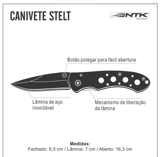 O Canivete Stelt da NTK é compacto e prático. Ideal para suas aventuras e campings.
