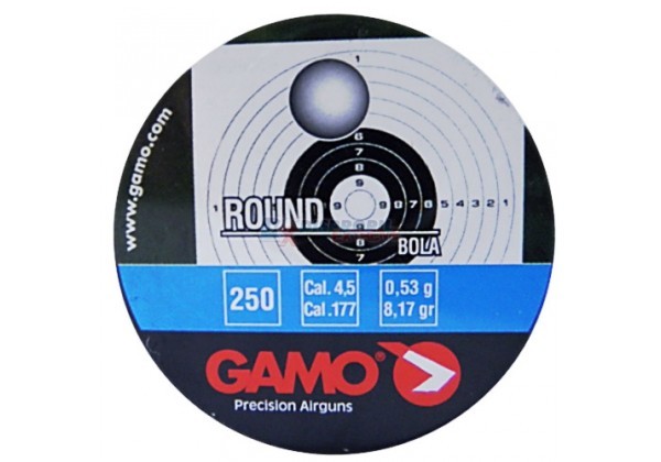 O chumbinho Round de calibre 4,5 mm da Gamo possui excelente performance, é muito equilibrado com ótima precisão, penetração e alcance. Possui cabeça lisa, pontiaguda e arredondada.